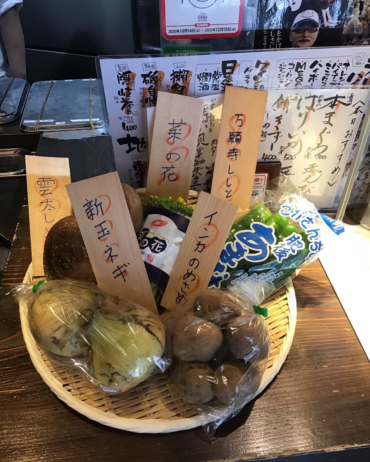 色々野菜入荷しました。万願寺ししとう菜の花新玉ねぎ雲太しいたけインカのめざめ天ぷら等色々できます。#居酒屋 #和食 #寿司 #すし # 天ぷら #天婦羅 #天麩羅 #立ち飲み #立ち呑み #福島 #福島区 #あたりや食堂 #地酒 #日本酒 #ゴールドステッカー #ゴールドステッカー認証店 #感染対策#雲太しいたけ#新玉ねぎ#菜の花#万願寺ししとう