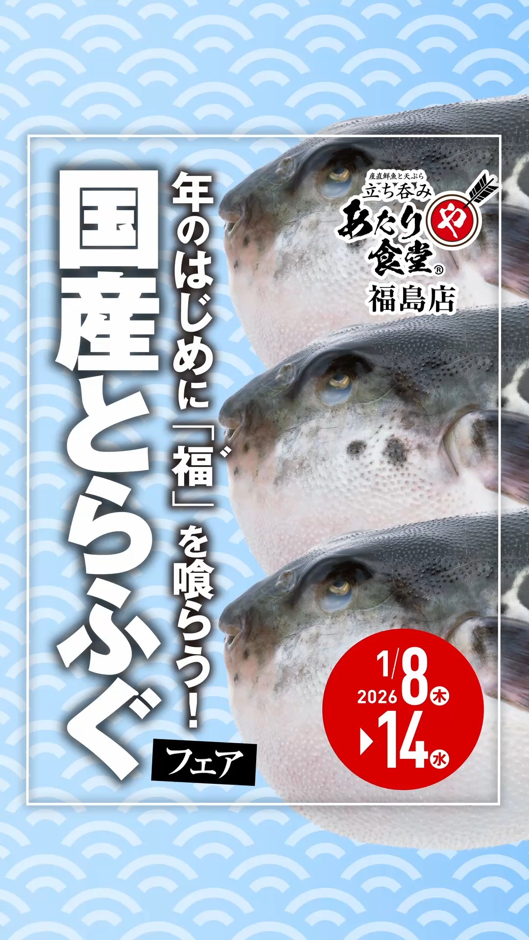【国産とらふぐフェア★1/8〜14】あたりや食堂 福島店