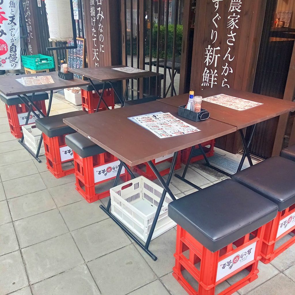 あたりや食堂福島店にテラス席できました🥰 お席はこんな感じなんとイス付きでーすのんびりされたい方はこちらで え、そういうて今日は雨やんってま、ま、屋根もあるので…