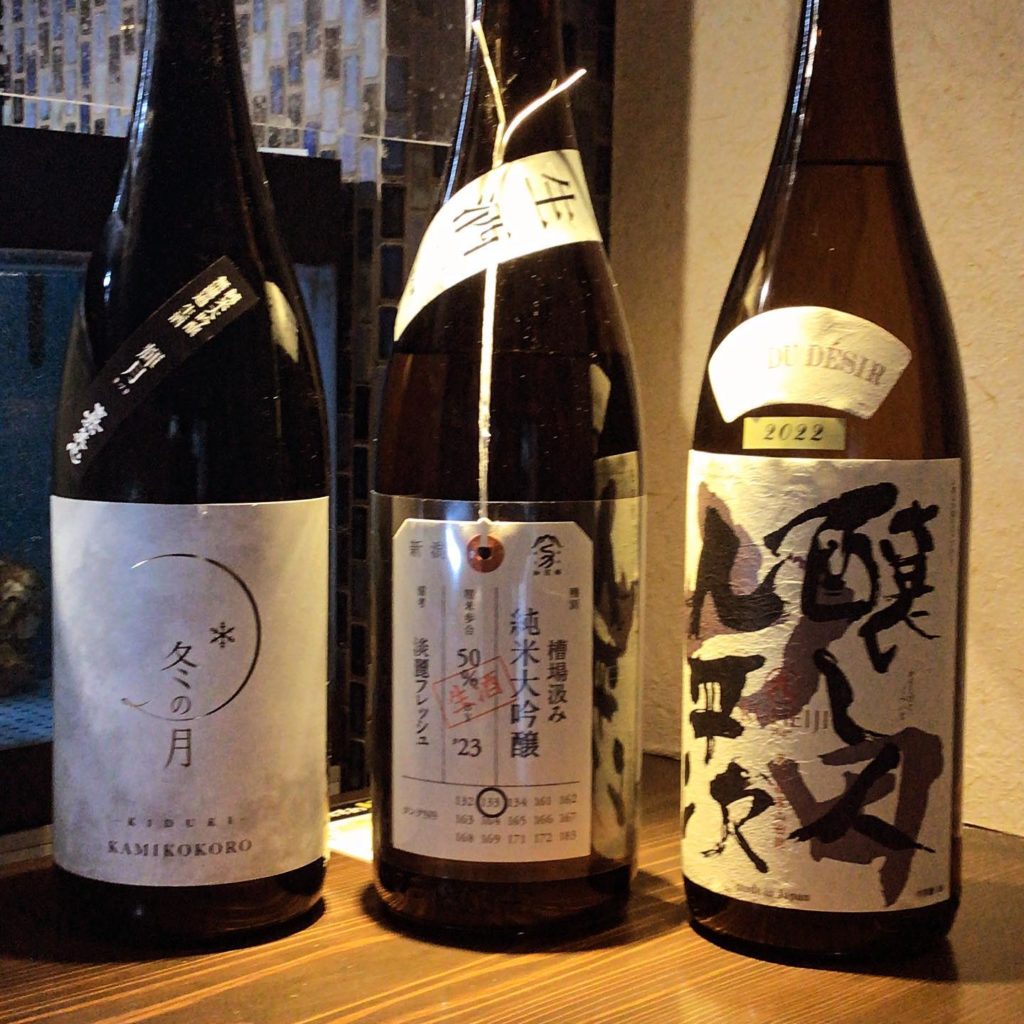 新しい地酒入荷致しました 左から…冬の月(岡山県)「春夏秋冬」の各季節をよりいっそう楽しむための特別な「冬の月」が今年も登場!第一弾は冬の輝月!フルーティーな白…