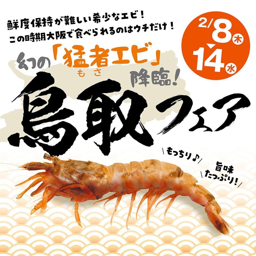 【幻のエビ×福島】猛者エビ降臨!鳥取フェア2/8~14あたりや食堂 2月のご馳走フェアは「鳥取県」なかでも幻のエビ🦐と呼ばれる「猛者エビ(もさえび)」は大阪では…