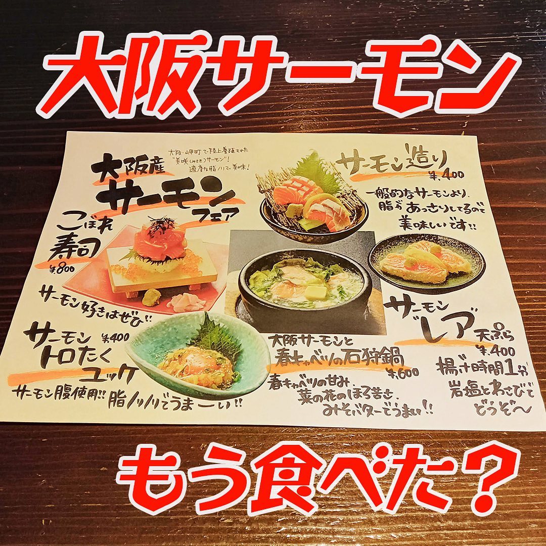 ■大阪サーモンフェア★14日まで#大阪サーモン 大人気!もうあなたは食べましたか?お店によってなぜか人気商品が違うなんば店は「トロたくユッケ400円」が人気!東通り店は「石狩鍋600円」がよく売れてるんですって!個人的には「こぼれ寿司800円」が食べたいです♪あなたの好みはどれかな~🥰大阪サーモンフェアは14日(木)まで仕事帰りにぜひちょい寄りしてください#あたりや食堂東通り店 は24:00まで営業首を長~くしてご来店お待ちしております🧑🏻#居酒屋東通りあたりや食堂 #東通りグルメ #東通り立ち飲み #梅田立ち飲み #梅田昼飲み #サーモン #美咲サーモン #日本酒