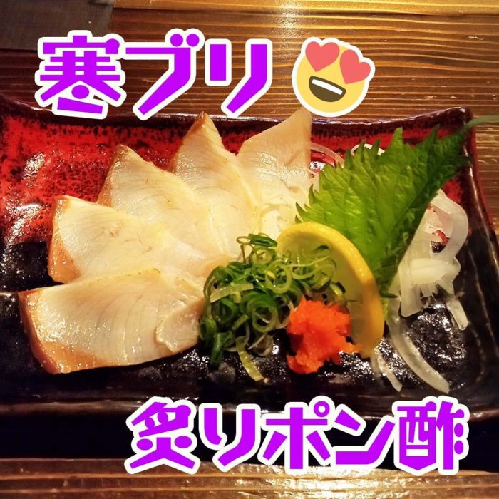 寒ブリ★一番人気!今、一番売れているのは寒ブリ炙りポン酢500円鮮度抜群!脂のりのりの寒ブリを表面をさっと炙ってポン酢でパクリ生よりしつこさがなく、めっちゃ美味…