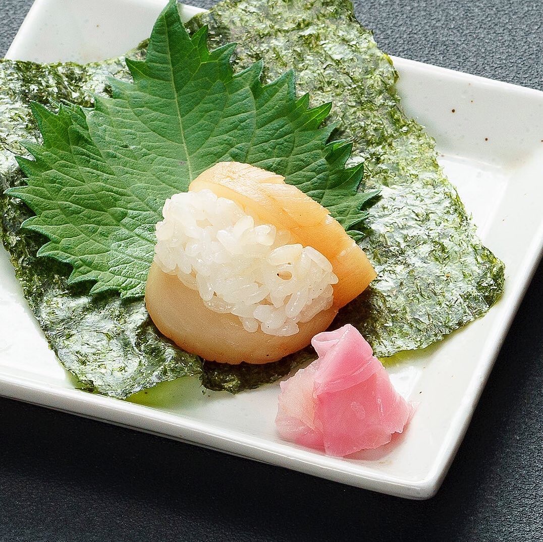 ホタテがシャリをくわえてます