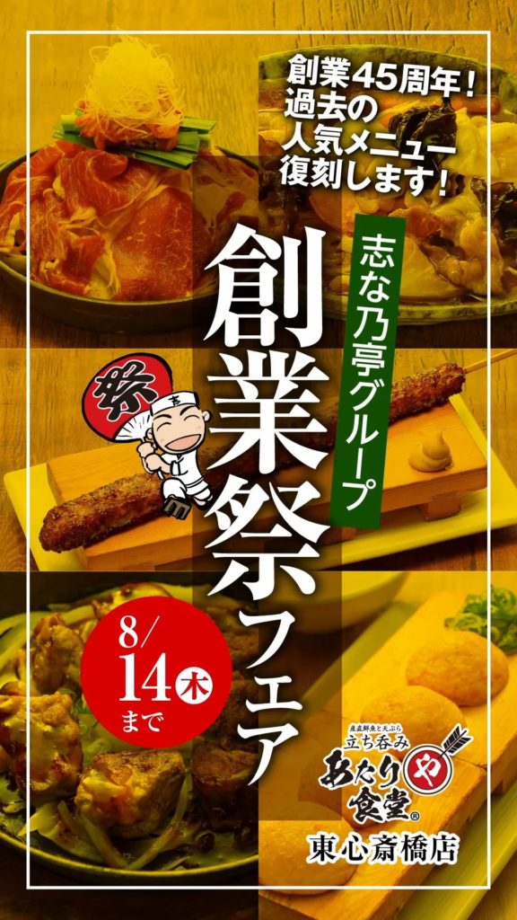 【志な乃亭グループ創業祭!8/8〜8/14】★ あたりや食堂 東心斎橋店