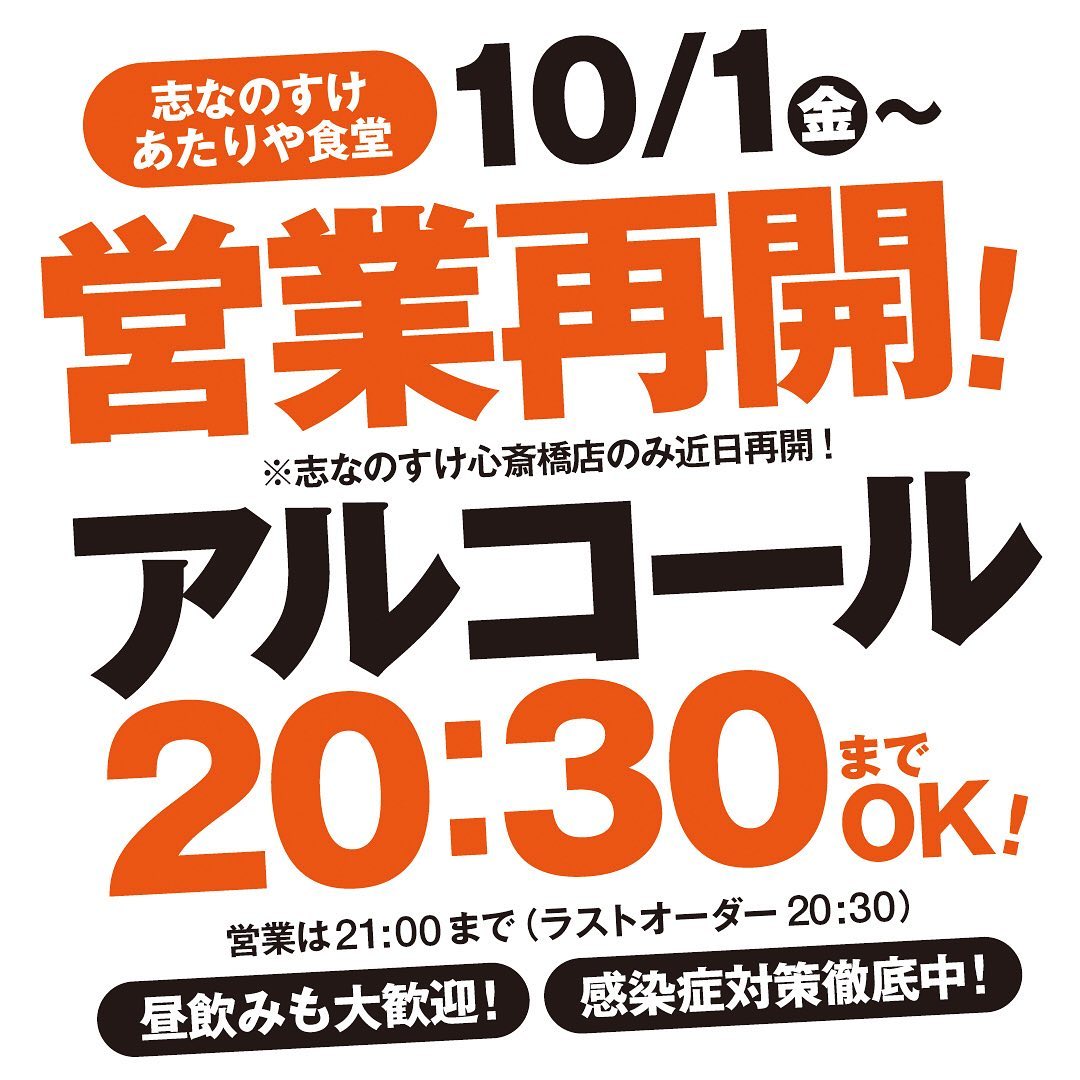 アルコール提供復活お店も営業再開しました〜営業時間 12:00〜21:00アルコールの提供は20:30まで4名様以下のグループ限定ですてことで#あたりや食堂なんば店 は朝からすでに営業中♫旬のお魚と季節の日本酒ずらりと揃えてご来店お待ちしてます️早く皆さんの顔が見たいっっ️お仕事終わったらダッシュでどうぞ#あたりや食堂 #なんばグルメ #なんば立ち飲み #なんば居酒屋 #ミナミグルメ #ミナミ居酒屋 #刺身 #アワビ踊り焼き #日本酒 #天ぷら